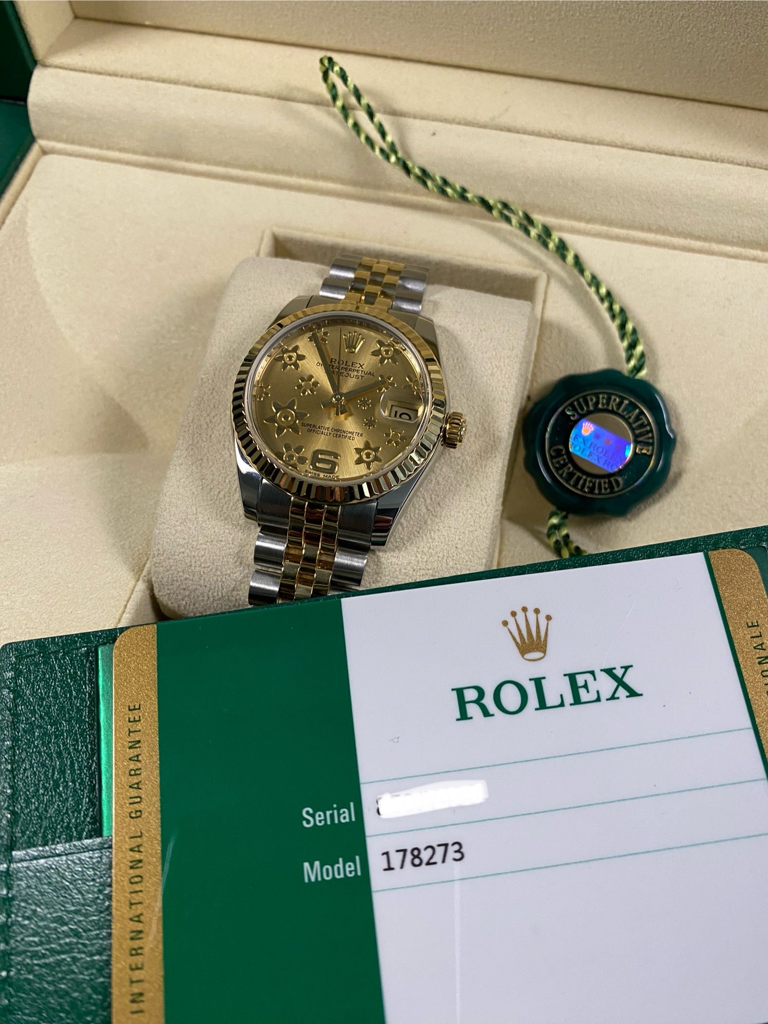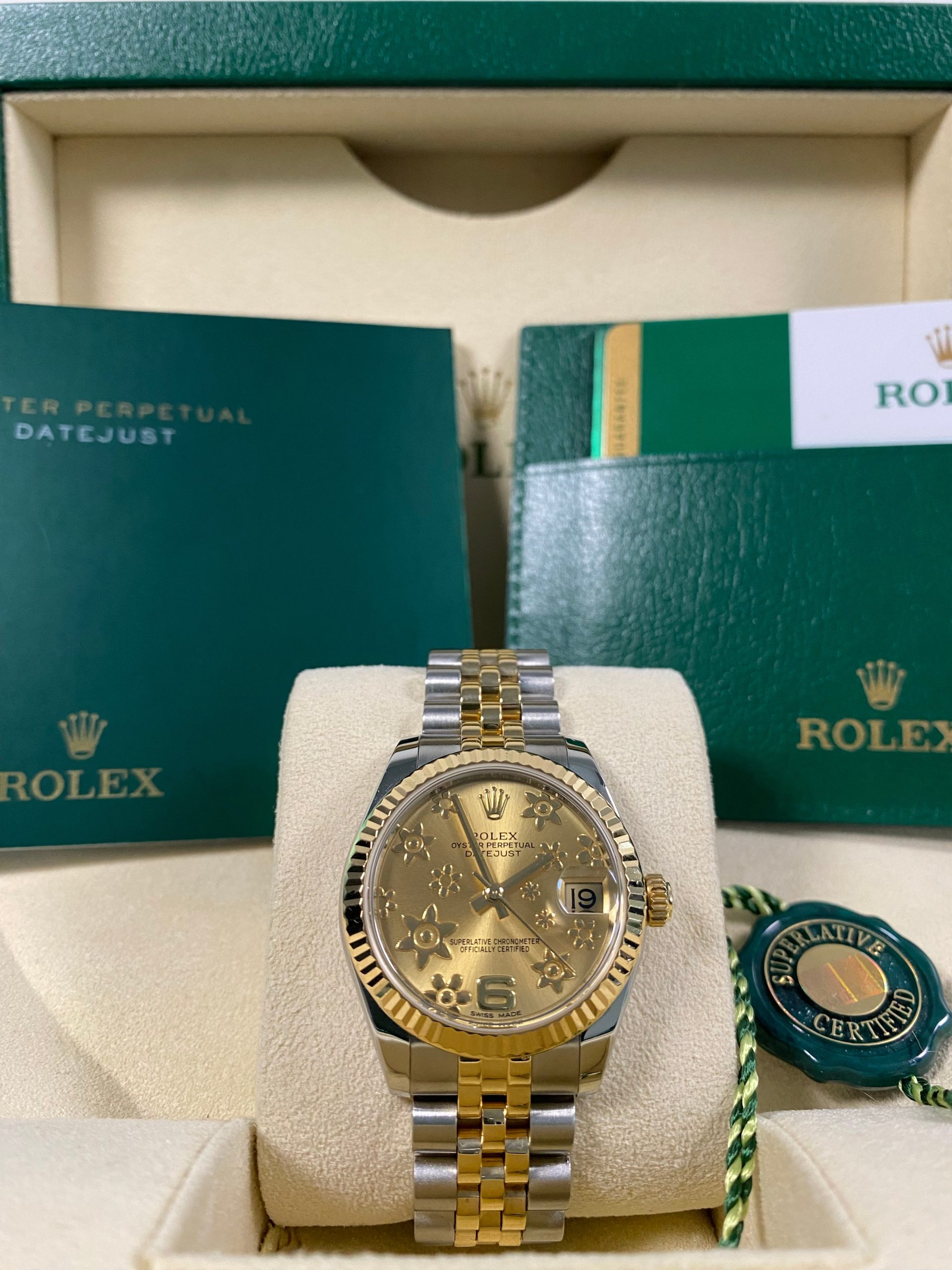 This watch is used but in mint condition and will come complete with all original Rolex accessories when purchased. The jubilee bracelet is in pristine shape as seen in the photo gallery. This timepiece was originally purchased from AD in March 2018 as indicated on its warranty card. We provide a 1-year Warranty.