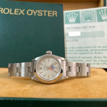 This watch is used but in very good condition and will come with an original Rolex box and paper when purchased. The oyster band is in great shape with a little stretch as seen in the photo gallery. Produced in 1999, this timepiece was originally purchased from AD in March 2000 as indicated on its warranty paper. We provide a 1-year Warranty.