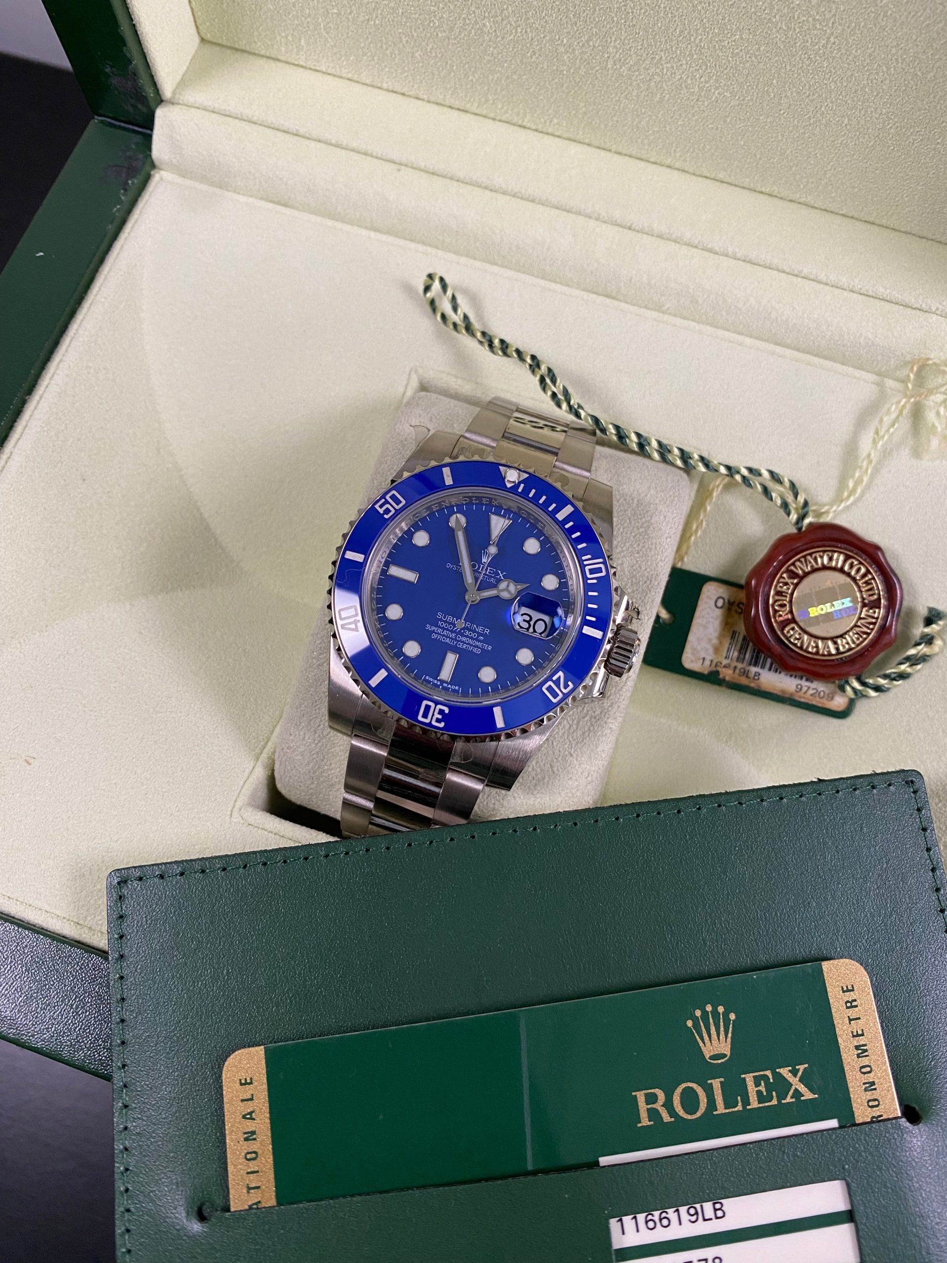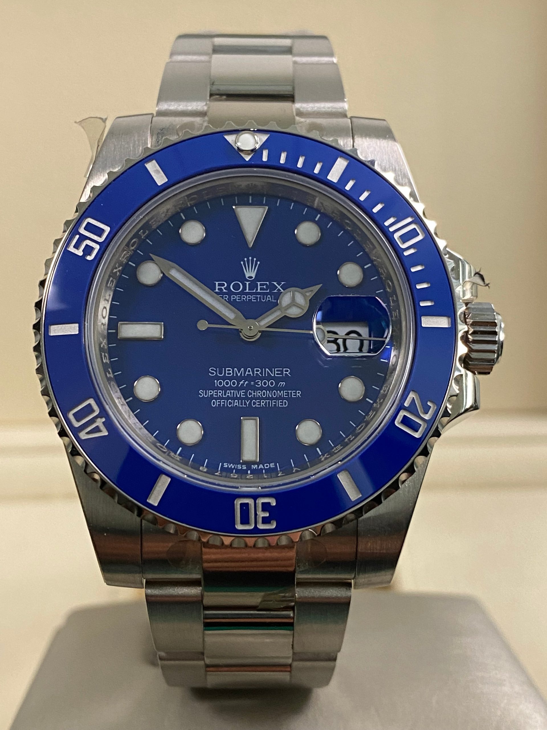 This watch is new old stock, unworn with partial stickers, and will come complete with all original Rolex accessories when purchased. This timepiece was originally purchased from AD in November 2011 as indicated on its warranty card. We provide a 1-year Warranty.