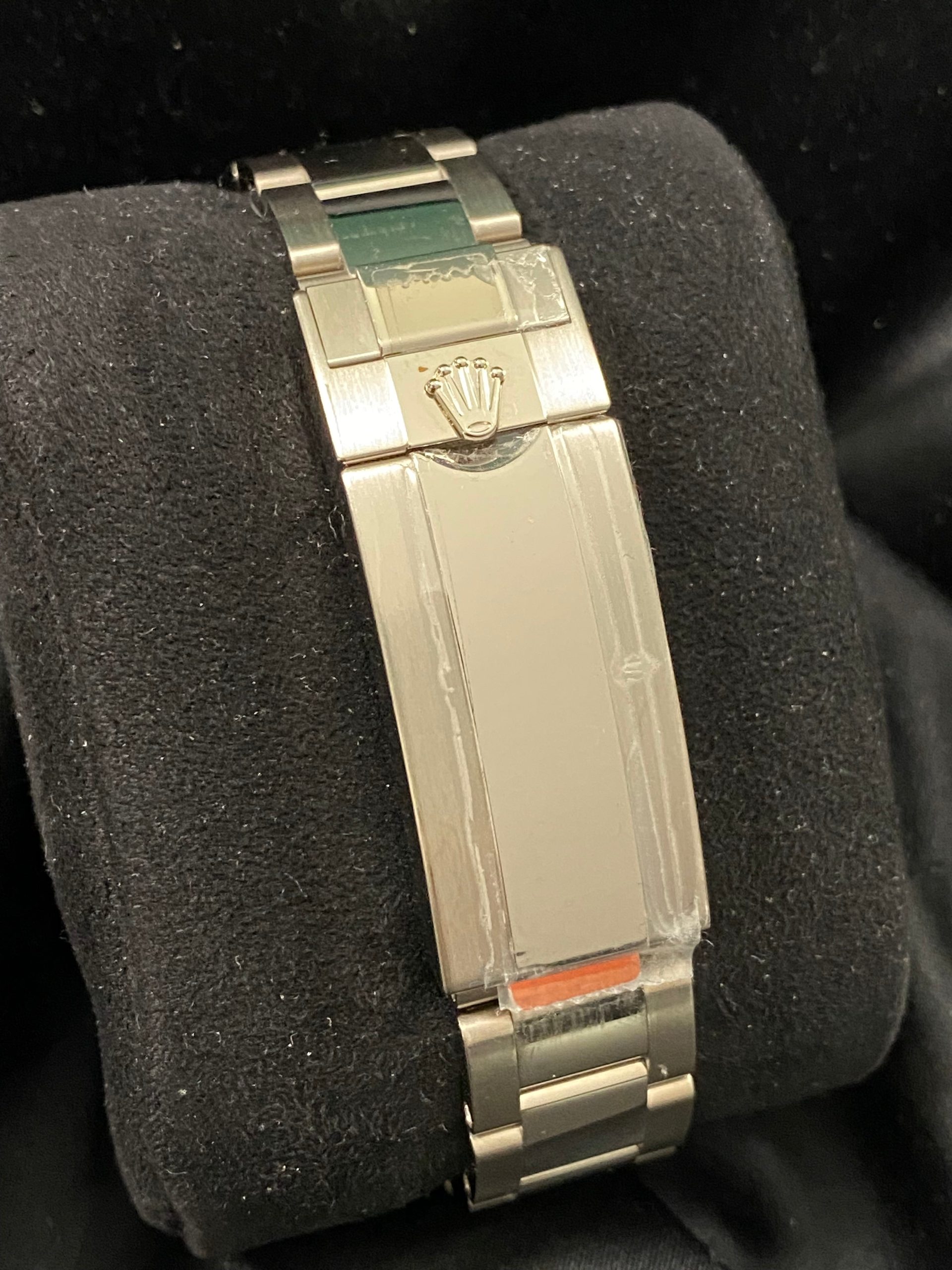 This watch is used but in mint condition, unpolished with partial stickers, and will come with an original Rolex box and new style warranty card when purchased. The oyster bracelet is in pristine shape as seen in the photo gallery. This timepiece was originally purchased from AD in October 2020 as indicated on its warranty card. We provide a 1-year Warranty.