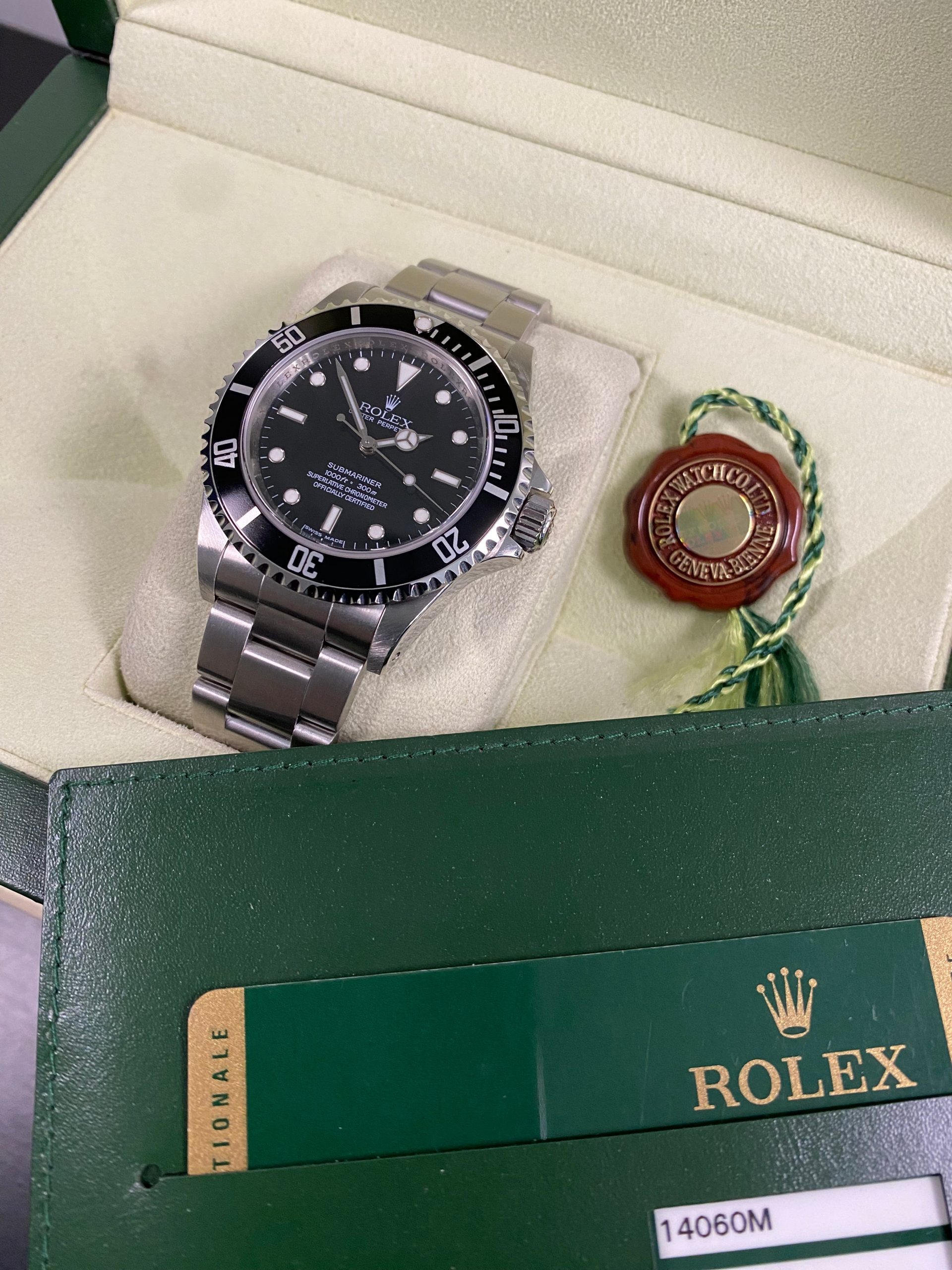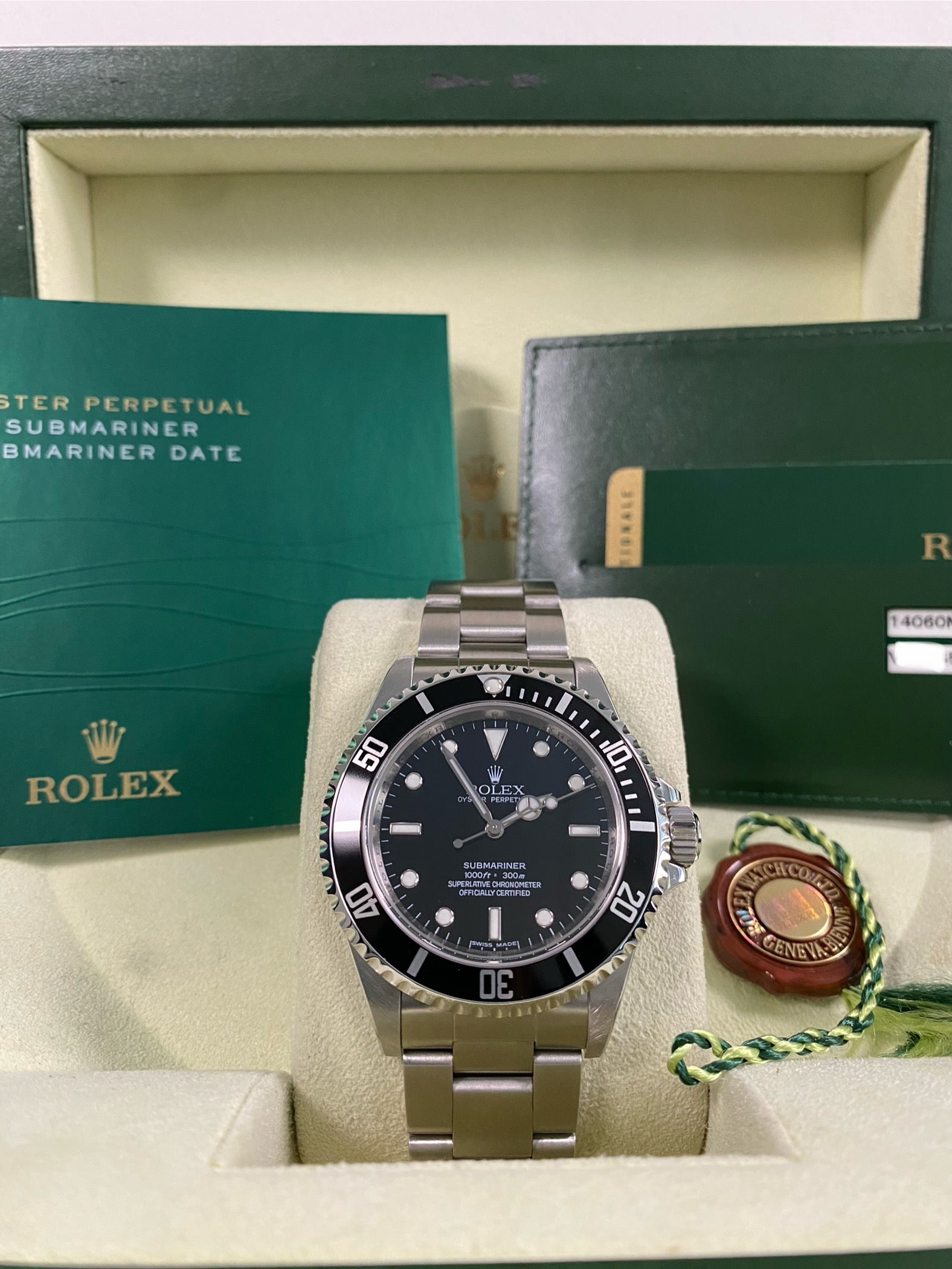 This watch is used but in mint condition and will come complete with all original Rolex accessories when purchased. The oyster bracelet is in superb shape as seen in the photo gallery. This timepiece has a V serial and was originally purchased from AD in December 2009 as indicated on its warranty card. We provide a 1-year Warranty.